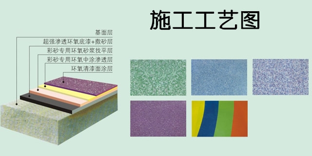 攤鋪一定要使環(huán)氧彩砂層表面整體平整。