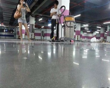 第一次撒布材料:將規(guī)定用量的2/3硬化耐磨地坪材料均勻撒布在初凝土混凝土表面后,用低速抹平機(jī)進(jìn)行打磨處理;